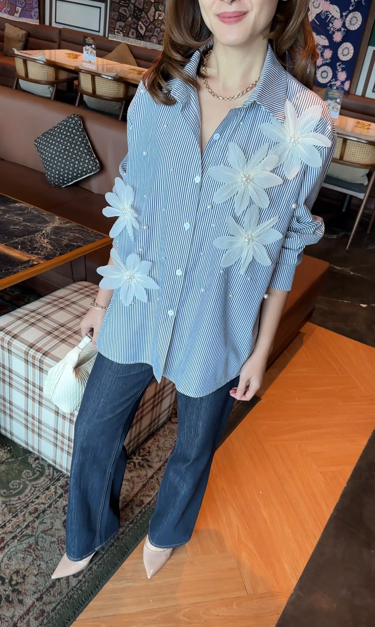 Cotton with 3D flowers